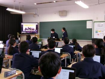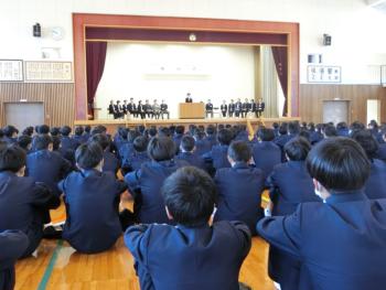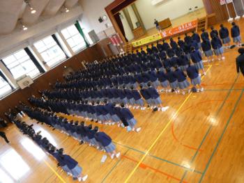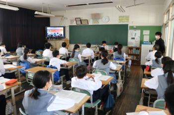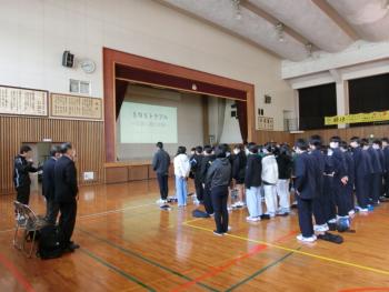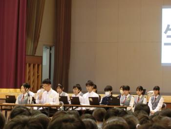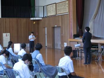 各学年の発表後、校歌を全校生徒で合唱し、校長先生講話と表彰伝達は、各教室へ戻りリモート行いました