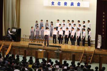10月20日(金)、文化発表会、合唱コンクールを開催しました。6年生、中学生の素晴らしい合唱・合奏、3年生有志による英語劇、中学生のプレゼン、6年生のスピーチ、美術部の絵、工作部のロボコン、吹奏楽部の演奏など、これまで一生懸命練習や時間をかけて制作したものを披露してくれました。