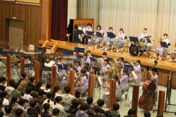 コンサートは2部構成で、テレビアニメのテーマ曲や吹奏楽コンクール自由曲、3年生アンサンブルの演奏、またユーモラスな曲の紹介などがあり、生徒たちの「限られた時間で数多くの曲をマスターした確かな演奏力」、「場を盛り上げるための企画力や発信力」に多くの方から称賛の声をいただきました。
