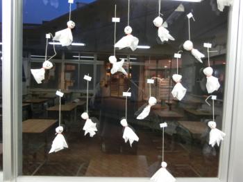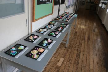 特別支援学級の生徒と6年生との交流学習でした。講師に、川ア奈緒美先生をはじめ、川ア先生と一緒に活動している方々に来ていただき、丁寧に教えていただきました。「どんな作品でもいい。お互いの違いを認め合うことが大事」という、インクルーシブ教育につながるお話もしていただきました。この体験を、家庭でも生かしてほしいと思います。