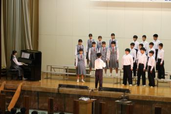 中学生は、それぞれのクラスで選曲した合唱を披露しました。曲に込められた意味を理解し、想いをのせて歌う姿に感動をもらいました。合唱コンクールにむけた練習の過程では、学級でうまくいかなかったことやもどかしいこともあったことと思います。練習してきた成果に手ごたえを感じたり担任の先生に褒められて練習が楽しくなったこともあったことと思います。一生懸命に練習したその過程で育んだ忍耐力や自信が子どもたちの今後を支えてくれることを確信した会となりました。