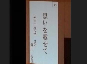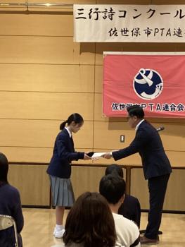 今年度の県P連「三行詩コンクール」において、2年3組の谷口和香子さんが最優秀賞を受賞しました。