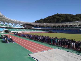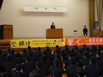 長崎県中学校体育大会駅伝競走の激励式を行いました。
