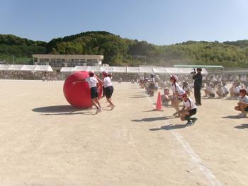 <大玉転がし(持ち上げて)> <長縄跳び>