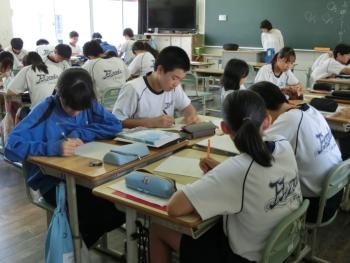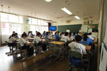 2年生で道徳の研究授業を行いました。「希望と勇気」を主題とした授業を行いました。子どもたちは、資料の中で苦難を乗り越えたピアニストの心情の変化をしっかりとつかみ、自分が困難に出くわしたときどのように乗り越えていくか考えました。子どもたちの意見の中には、「どんなときも努力することをし続けることが必要だ。」、「あきらめない力が必要だ。」との発表がありました。また、9月から広田中学校には、4名の教育実習生が来ており、実習生も一緒に参観し学ぶことができました。