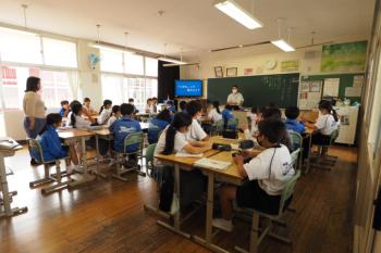 1学期に開催した1回目の学習では、各クラスで留学生に出身国の慣習や文化について話してもらい、自分たちの生活や文化との違いに驚き、世界に目をむける機会をもちました。
