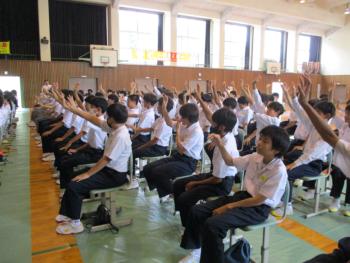 1年生は、2学期のより良い学級・学年づくりを目的に学年集会を行いました。