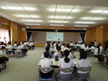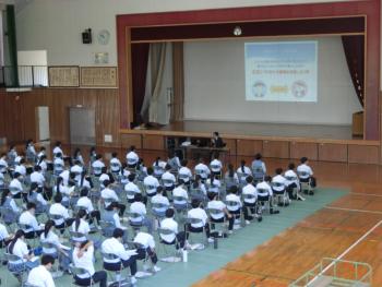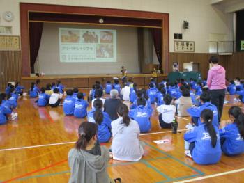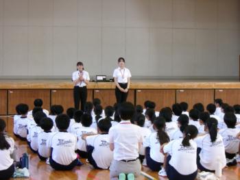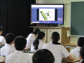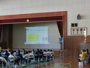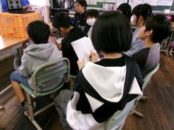6年生は、説明を聞きながら熱心にメモをとったり、質問や意見を述べてくれたりして、中学生の発表から多くを学んでくれました。