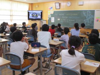 本校の平和集会では、各学級の代表である人権平和実行委員会のこどもたちが、平和問題を自分のこととしてとらえ、平和な学校・社会を築くためにできることを全校で考えることができるように会を進行し、佐世保大空襲をとおして平和について考えた集会の振り返り、6年生による読み聞かせ、長崎原爆犠牲者慰霊平和式典の視聴、黙とうを行いました。平和の尊さを実感し、この平和を守り続けなければならないと感じた日になったはずです。