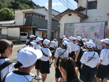 ふるさと歴史発見のフィールドワークを行いました。佐世保市には、たくさんの歴史的な遺産があります。いつも歩いていた街並みや、毎年同じ時期に咲き誇る彼岸花や実る稲穂の間にある田園風景の中に歴史的に貴重な遺産があることを知り、佐世保のよさを再発見できた1日になりました。1年生は、今回のフィールドワークで学んだことをまとめ、お互いに共有するための発表資料つくりを行っていきます。