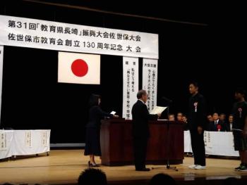 佐世保市中学校体育大会駅伝競走に出場しました。女子は3位に入賞しました。男子は、目標とする結果を残すことができませんでした。駅伝に選手として出場した生徒もサポートとして参加した生徒も、7月から9月までの早朝と夕方のきつい練習を続けてきました。2学期に入ってからも早朝から練習し、通常の授業を受けて、放課後の練習に取り組んできました。この経験は、生徒たちが大人になって困難に遭遇した時に支えとなる経験になったと確信します。これまで、早朝に生徒たちを送り出してくださった保護者の皆様ご協力ありがとうございました。早朝から大きな声援とともに行った練習を温かく見守ってくださった地域の皆様ありがとうございました。そして、駅伝部のみなさん感動をありがとうございました。