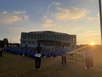 台風の影響で延期された体育大会でしたが、秋晴れのもと無事行うことができました。テーマは「情熱(707乗)+笑顔(707乗)=青春」。小学生も中学生も、協力してつくり上げた体育大会。3年生にとっては最後の体育大会でしたが、「青春」の1ページを飾る行事だったのではないでしょうか。