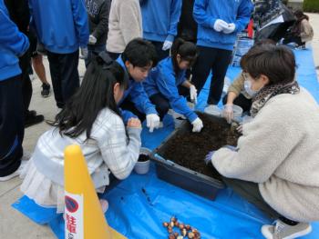 また、生徒たちは、事前学習として防災について家庭科の授業で知識を深めたり、国語の授業で災害に関する資料を読み取ってまとめたりして、教科での学習を生かして今日の体験に臨むことができました。
