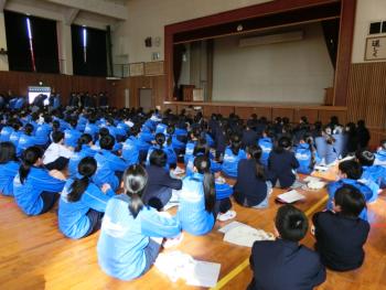 6年生と中学校1年生が総合的な学習の時間において交流を行いました。