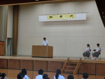 7月21日(金)終業式が行われました。夏休みはしっかり休養をとり、時には家事手伝いを行い、元気でひと回り成長した姿を始業式で見せてください。