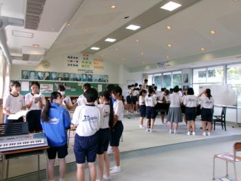 小学校6年生からは、「世界を旅する音楽室」、「地球星歌」の2曲が合唱として披露されました。テンポのよい曲でダンスをしながら歌っている間は、中学生から手拍子が自然と湧きあがりました。