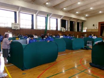 また佐世保市防災危機管理局のご協力で、避難所での簡易テント設営と利用体験、備蓄食料を確保することの大切さの確認ができました。アルファ米をご提供いただきましたので、調理実習の際に食する機会を設定することとしています。