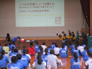 教室の最後に、渋谷防災士から「防災のアンテナを高く広く伸ばして、助けられる人から助ける人になってほしい」、「今日の学びを家族や友達に話して、自分の学びをより深めてほしい」とメッセージをいただきました。