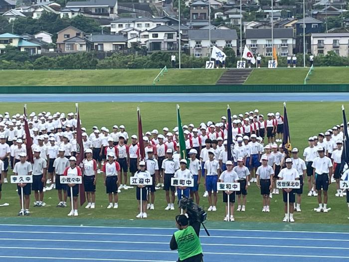数年ぶりに佐世保市総合グランドで開会式が行われ、代表の生徒が参加しました。