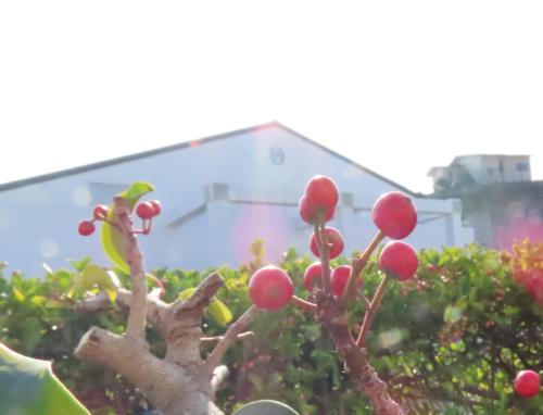 冬の澄み切った空気の中、校庭のモチノキが真っ赤な実をつけました。 この一粒一粒の赤は、厳しい冬の寒さに耐えながら、内側に秘めた生命力を静かに、しかし力強く表現しているかのようです。