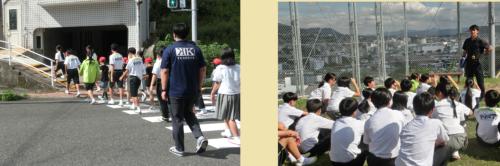 10月6日(月)、小中学校合同で避難訓練を実施しました。今回は大地震、その後の津波から避難するという想定で訓練を行いました。万が一に備え、高台の琴平公園まで避難しました。
