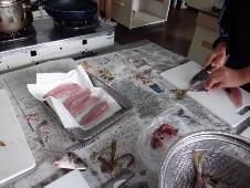 克服 先週、3年3組のお魚料理教室がありました。教えていただいたとおりの手順で、慎重にアジを三枚おろしにする生徒たち。一尾丸ごと調理する経験をし…