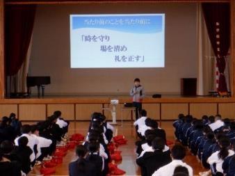 学年集会 2学年の学年集会がありました。F先生から、当たり前のことを当たり前にすることの大切さについて、教育哲学者の森信三先生の言葉「時を守り、場を…