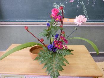 秋の訪れ 今年4回目のお花教室がありました。秋らしい色合いのハイビスカスや小菊のボルドーとリンドウの青紫が美しく映えています。リンドウの花言葉は「正…