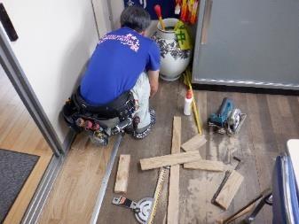修理 校長先生が修学旅行の引率で留守の間に、学校管理員のTさんが校長室の床を修理してくださいました。校舎が古く、シロアリの被害を受けて、歩くたび…