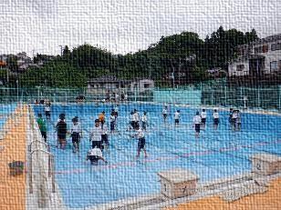 プール掃除進行中 今年もプール掃除が始まりました。毎年、2年生が担当して、藻が生えたプールの壁や底をひたすら磨きます。様子を見に行くと、体操服や家から持って…