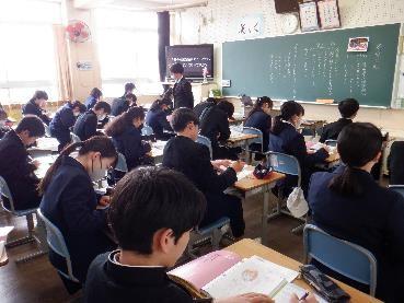 授業参観(2/13(火)) 1・2年生の授業参観がありました。多感な時期と言われる中学生は、保護者が来ることを恥ずかしがるかと思いきや、心の中では来てくれることを喜ん…