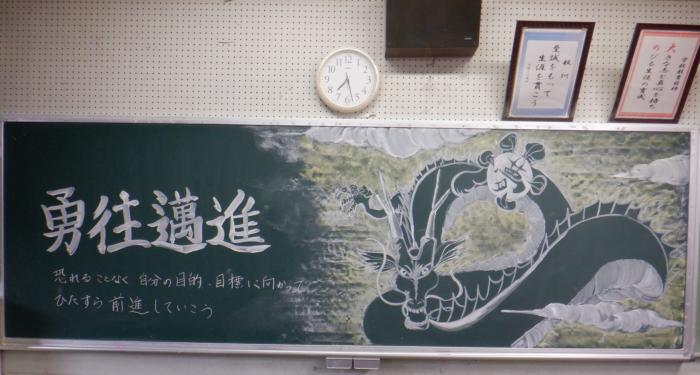 朝の教室 生徒がまだ登校していない教室の様子です。新年を迎えるにあたり、担任や主任が生徒への思いをしたためていました。生徒への愛情いっぱいです。登校…