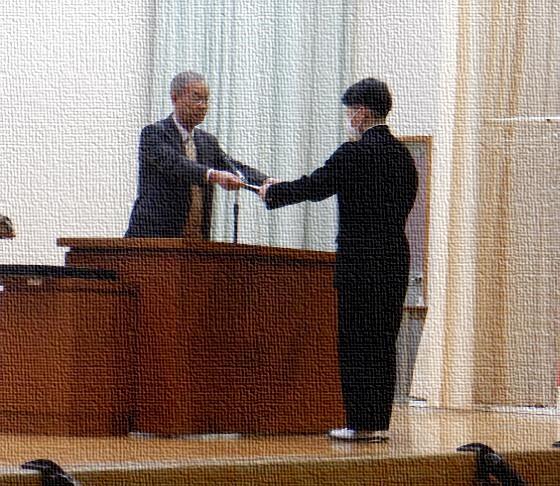 表彰 本日、全校生徒による式練習の前に、校長先生から生徒会長のMくんに表彰状が手渡されました。長崎県教育長名の優良卒業生徒表彰です。在学中よく努…