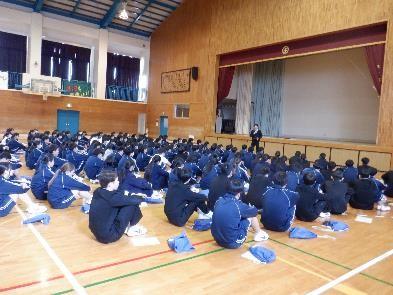 新入生学校説明会 寒い日が続いています。中学校では、雪の降る23日(火)に小学6年生に向けて学校説明会を開催しました。小学生は中学校まで歩いてきてくれたので…