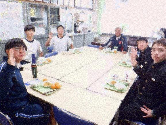 生徒愛 生徒愛の深い校長先生は、最近、卒業を迎える生徒と一緒に給食をとられています。各学級で小グループをつくり、3年生全員と会食する予定です。今日…
