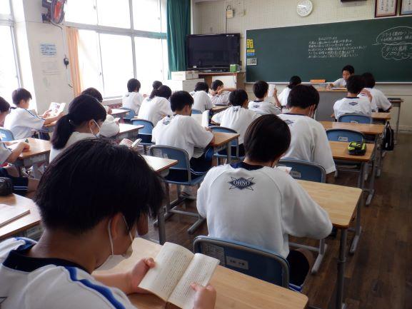 本の世界 大野中学校では、火・金曜日の朝に読書をしています。