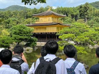 5台のバスのうち、4台が金閣寺に向かいました。私は金閣寺グループに同行しました。