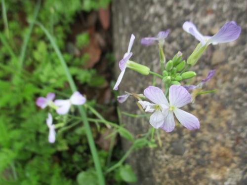 校庭でハマダイコン(浜大根)の花を見つけました。名前にハマとつくとおり、本来は海岸の砂地に自生する植物です。しかし、人の手による土砂…