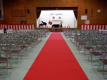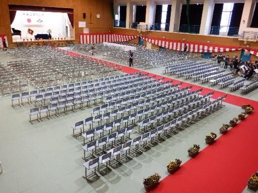 前日 準備が整った会場です。卒業生を思いながら、在校生と職員が一丸となって作業をしました。3年生の教室の飾りつけもほぼ終わり、吹奏楽部の最終調整…