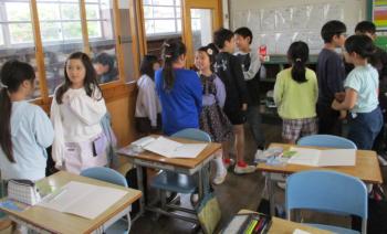 ジャンボ! 3年生が外国語活動の授業で「世界のいろいろな国のあいさつ」について学習していました。世界にはたくさんのいろいろなあいさつがあります。「ジャ…