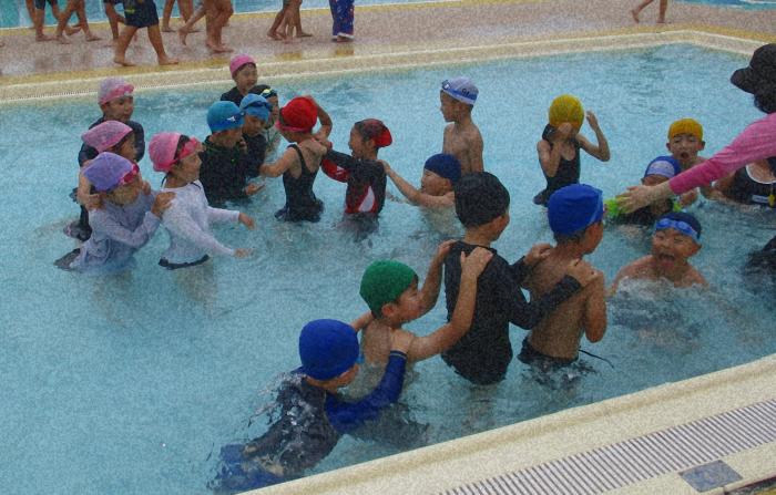 初めてのプール、楽しかった! 今日、1年生が初めて小学校のプールに入りました。ウキウキワクワク、みんな楽しそうでした。じゃんけん列車や洗濯機(流れるプール)作りなどをし…
