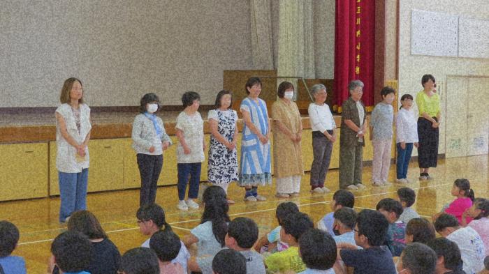 図書ボランティアの皆さんを紹介しました。 18日(火)に体育館で図書ボランティア「WAKUWAKUおはなし隊」の皆様の紹介をしました。毎週火曜日の8;25〜8:40に各教室で読み語…