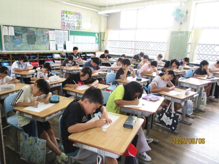 今日(6月6日)の朝の時間は、「校内漢字テスト」でした。今年度になって2回目です。みんな真剣に取り組んでいました。また、2〜4時間目に高学…