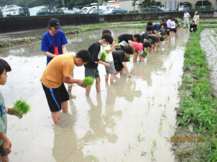 6月12日(木)、5年生が田植えを行いました。川中さんのご指導の下、自分たちで種から育てた苗を植えました。最初はぎこちない様子でしたが、だ…