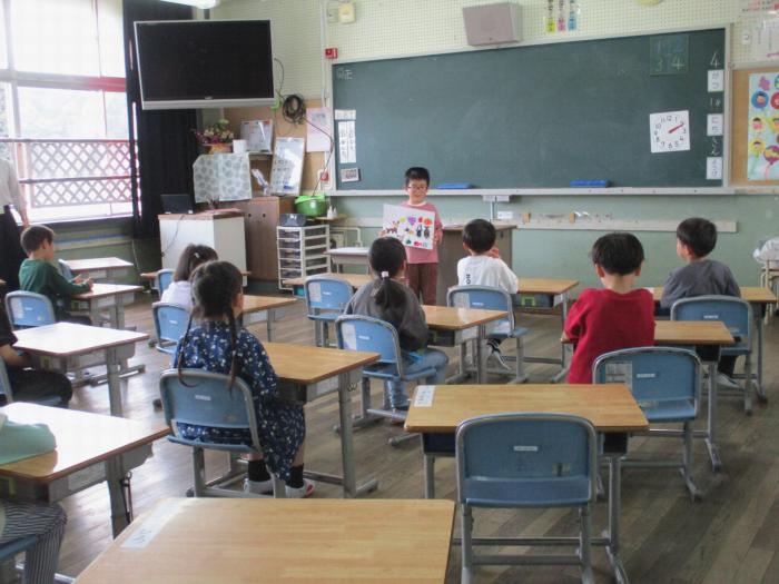 初めての参観日でした。 今日は、参観日でした。1年生にとっては初めての参観日でした。まだ、ひらがなの練習をしていないので、自分の好きなものを絵で描いて発表していま…