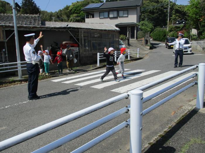 交通安全教室 今日の2時間目に1、2年生が交通安全教室を行いました。早岐警察署から2名来ていただき、安全な横断歩道の渡り方を中心にご指導いただきました。…