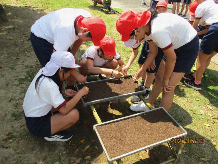 稲の種まき 5月14日(火)に5年生が稲の種まきを行いました。今年も地域のゲストティーチャーの川中さんにご指導いただきます。苗床を丁寧に作るところから…