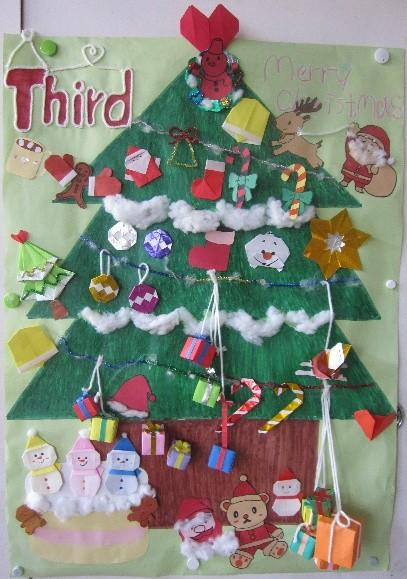 クリスマスツリー 生徒会主催でクリスマスツリーを製作し、学年で出来栄えを競う、お楽しみプロジェクトが実施されました。各学年個性いっぱい夢いっぱいのツリーが完…
