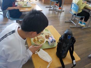 令和8年度、最初の給食はちゃんぽんでした。子どもたちも大好きなメニューで、おかわりする子がたくさんいました。「美味しい」という声が、あちらこちらから聞こえてきました。