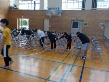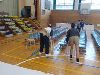 6年生が、入学式準備に取り組みました。いすを並べたり、掃除をしたりして新入生を迎える準備を整えていました。どの子も熱心に取り組んでいたので、すてきな会場ができ上っていました。